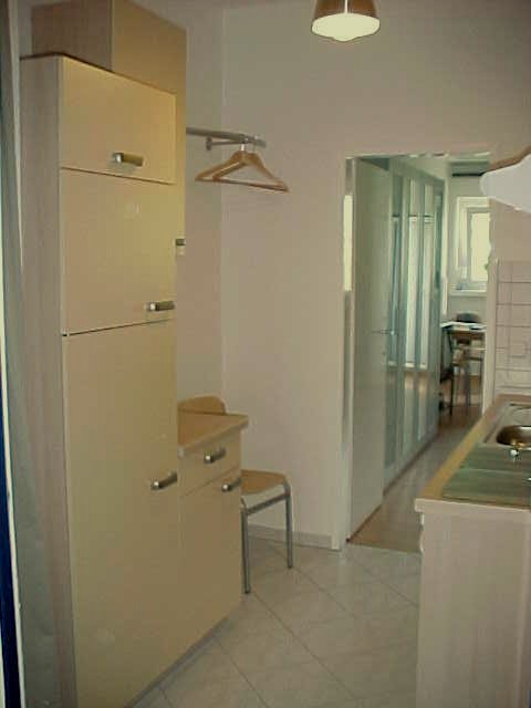 | Zimmer | Garderobe mit Ablagen und aktuellen Zeitungen, Spiegel, Abtrennung (Staubsauger, Bügelbrett, Bügeleisen) |
